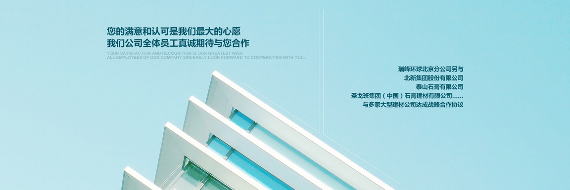 北京市朝陽區金盞鄉科鷹科技園內,是北京******的建材營銷商之一,專業銷售各種高檔建筑材料的現代化公司.本公司已與多家大型建材廠家達成合作協議:泰山石膏建材有限公司,北新建材有限公司,濱州綠邦有限公司,河北金秋有限公司,北京金隅砂漿有限公司,歐文斯科寧(中國)投資有限公司,湯姆節(jié)能建材(北京)有限公司等.更與國外泰國工廠生產的:美巖板,清水板,木絲水泥板,木紋木絲板……簽訂了國內經營權;與德國高新企業超薄石材簽屬超薄巖板國內代理權(超薄巖板,可彎曲石材,厚度1.5~2mm左右)與臺灣合作研發(fā)礦石板(以最好的效果提現礦石的效果).好的工程絕對少不了一個好的建筑材料,瑞峰環(huán)球攜手各大品牌為您的工程保駕護航.